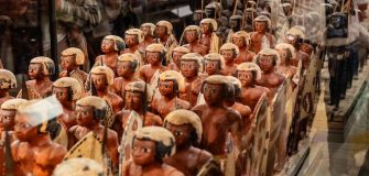 Great Egyptian Museum, abierto poco antes de nuestra excursión, recientito, reluciente, deslumbrante. Dice nuestro guía que ha costado miles de millones de dólares. Busco en la página oficial y no dice nada de su construcción ni de sus arquitectos, sólo lo que valen las entradas, los horarios de apertura y la contratación de guías. Me abstengo de buscar más datos. Es una de las atracciones que merece la pena visitar, un empacho de estatuas, estatuillas, piramidones (no lo que usaba mi madre para bajarme la fiebre, sino la punta de la pirámide, pequeña y de oro ausente porque lo robaron hace siglos los saqueadores de tumbas), carros, cachivaches que los faraones se llevaban a la tumba para no aburrirse en la eternidad. Lo más conveniente y práctico es pasar allí el día, con una pausa para comer en el restaurante. Un guía diligente y erudito es aconsejable. Con esa visita y las pirámides de Guiza tiene uno suficiente para dos o tres días, y luego, coger el crucero rumbo al sur y visitar lo que uno quiera a la hora que le dé la gana. La alternativa es subirse a un caballo o a un dromedario y recorrer el país de norte a sur como un jenízaro de esos que pintó Goya atravesando cristianos madrileños el 2 de mayo de 1808.